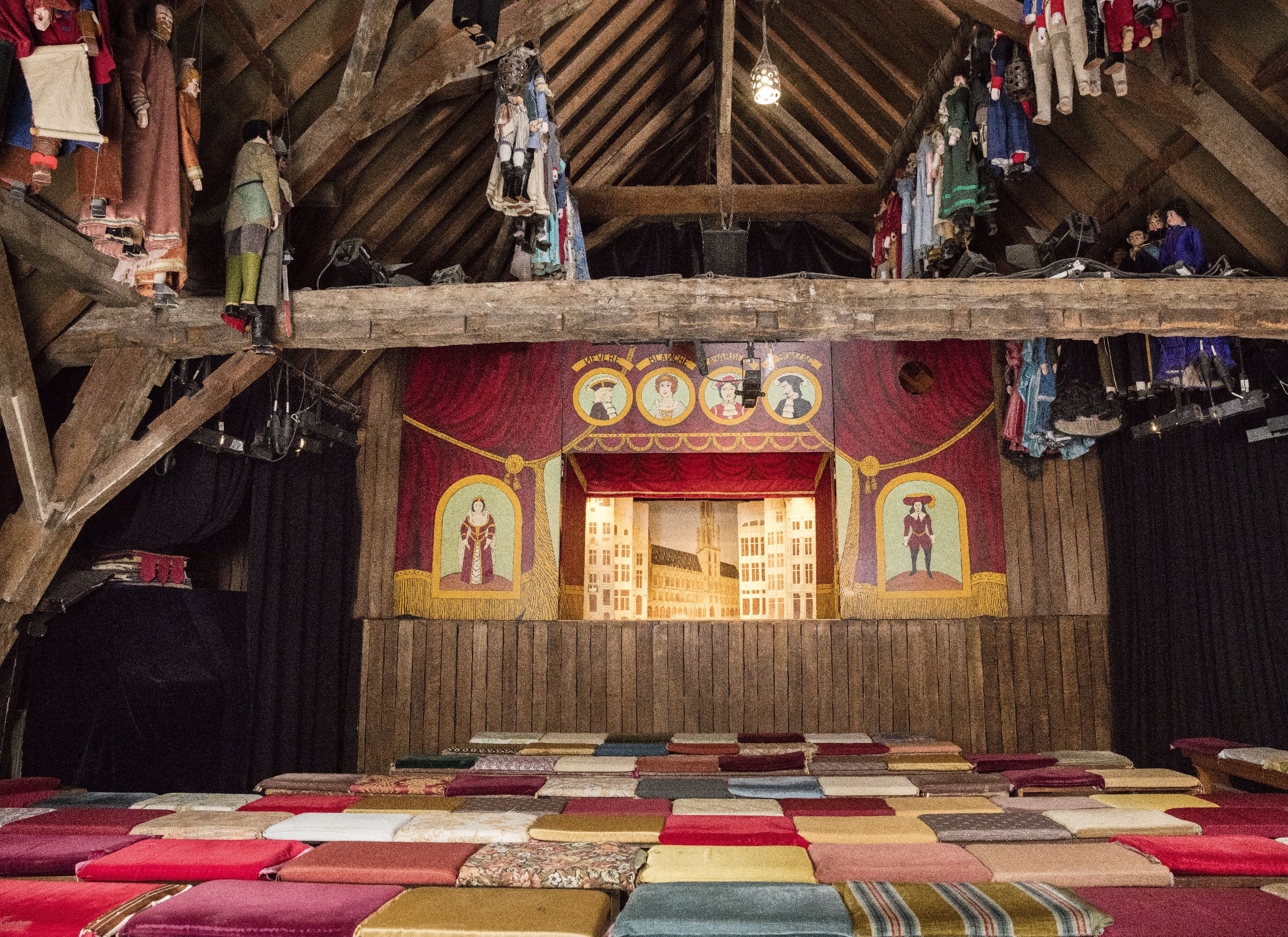Née dans les ruelles populaires de notre capitale, cette forme de théâtre burlesque a traversé les siècles sans perdre son humour ni son impertinence. Elle trouve ses racines dans une technique venue de Sicile et arrivée en Belgique à la fin du Moyen Âge. Depuis plus de quatre siècles, les marionnettes à tringle, sculptées dans le bois, portées par une longue tige de métal et manipulées au-dessus de la scène, donnent vie à un répertoire où se croisent chevaliers, reines, diables, sans oublier le légendaire Toone, figure tutélaire du Théâtre Royal de Toone. Quand la bourgeoisie se rendait à l’opéra, les marionnettes offraient un théâtre populaire, où l’on rejouait les grands classiques en parodie.